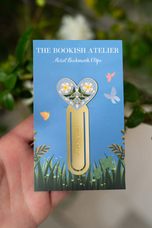 Blue Daisy Heart Metal Bookmark Clip
