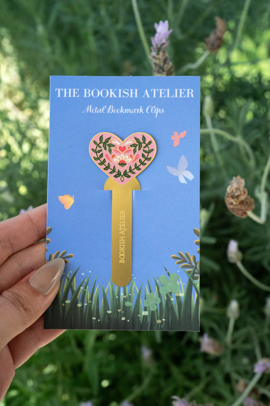 Pink Floral Heart Metal Bookmark Clip