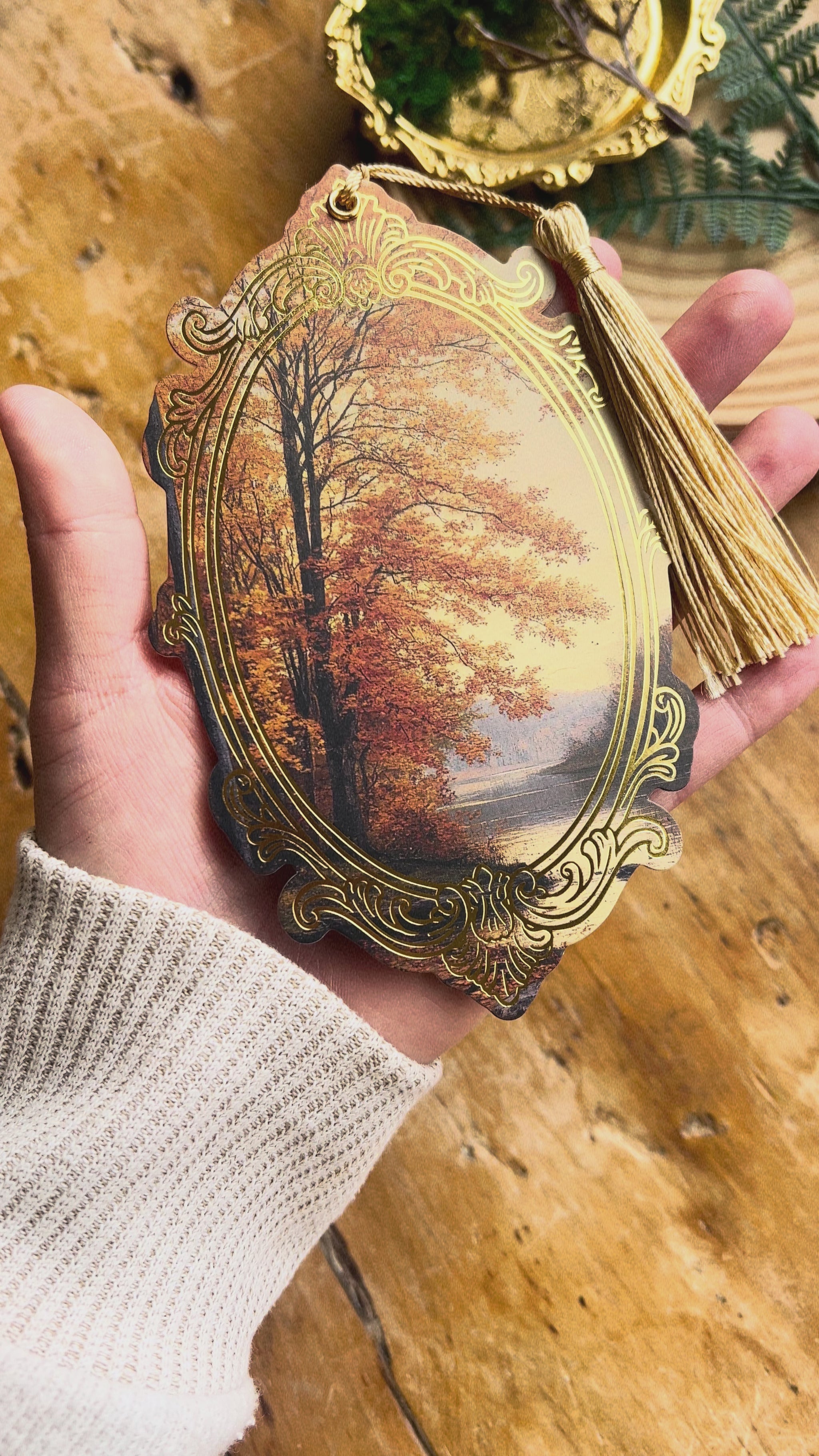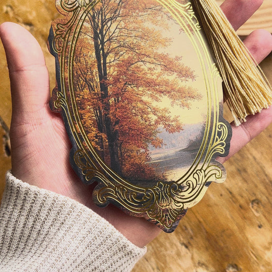 Make your reading a little extra magical with our stunning foil bookmarks! This beautiful autumn-themed bookmark is from our Portals to Realms collection and features gold foil, die cut shape, and gold tassel. Printed on thick cardstock with matte lamination.