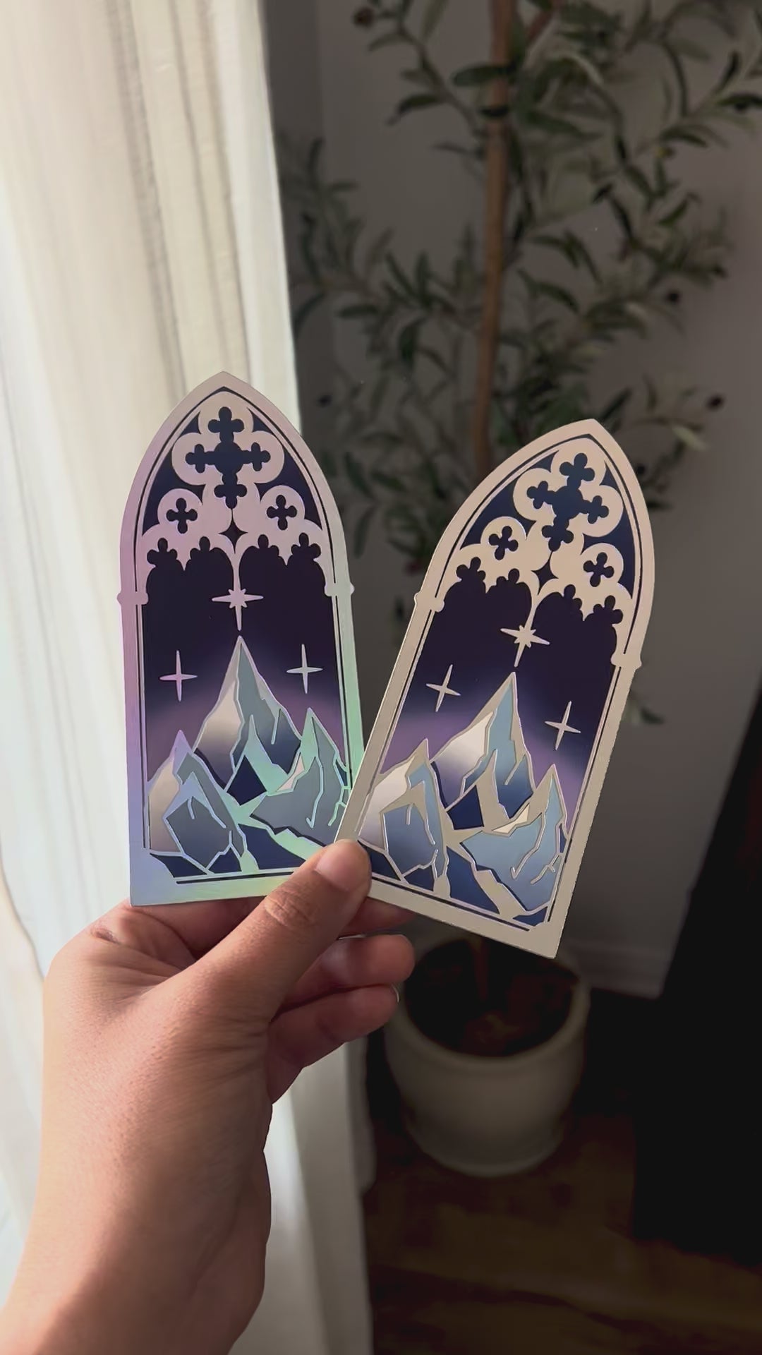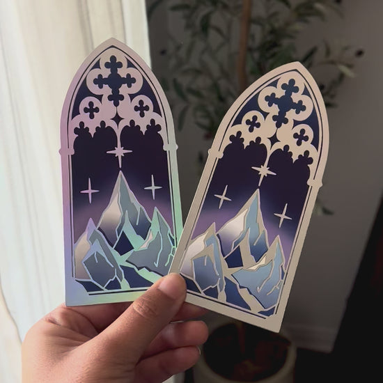 This beautiful Starry Mountain Gothic Window Bookmark features: